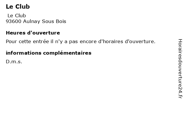 2 Le Club (Distance: 15,89 km) 55-77 Avenue de Fontainebleau, 94270 Le Kremlin-Bicêtre cafe, club, cuisine, fast-food, le, restaurant, restauration 3 Club Moving (Distance: 1,04 km) 214 Avenue Aristide Briand, 93320 Pavillons-sous-Bois club, fitness, moving, musculation, salle, sport 4 Club Aulnaysien de Tennis (Secrétariat) (Distance: 2,15 km) 1 Rue du Maréchal Juin, 93600 Aulnay sous Bois aulnaysien, club, de, du, ecole, horaires, secrétariat, tennis, équipes 5 Club Aulnaysien de Tennis (Distance: 2,15 km) 1 Rue du Maréchal Juin, 93600 Aulnay sous Bois aulnaysien, club, de, du, ecole, horaires, tennis, équipes 6 |