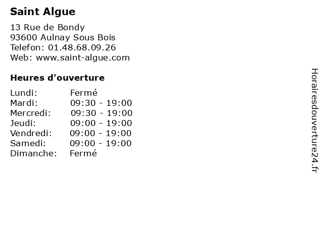 | Lundi | Fermé |