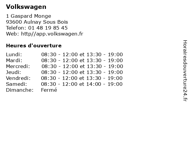 | Lundi | 08:30-12:00 et 13:30-19:00 |