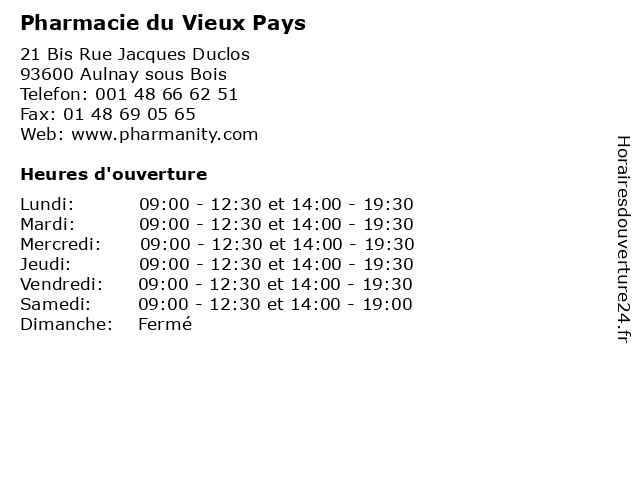 | Lundi | 09:00-12:30 et 14:00-19:30 |