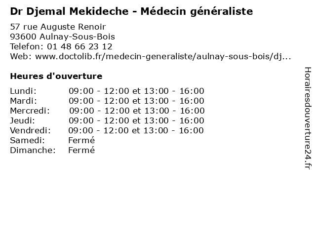 | Lundi | 09:00-12:00 et 13:00-16:00 |