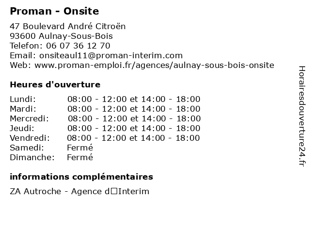 1 Adecco Onsite Automobile (Distance: 0,08 km) - Boulevard André Citroën, 93600 Aulnay-sous-Bois adecco, agences, automobile, cdd, cdi, emploi, emploi intérim, onsite, services 2 Adecco Onsite Logistique (Distance: 2,31 km) - Chemin de Montjay, 95500 Bonneuil-en-France adecco, agences, cdd, cdi, emploi, emploi intérim, logistique, onsite, services 3 Proman (Distance: 2,65 km) 7 Rue du Canal, 95942 Roissy Charles de Gaulle agence, d'intérim, expertise, proman 4 Randstad-Onsite (Distance: 4,38 km) 14 Rue de La Belle Borne, 93420 Villepinte agence de recrutement, agence intérim, cabinet de recrutement, offres d'emploi intérim, onsite, randstad 5 Proman (Distance: 13,36 km) 47 Boulevard de Magenta, 75010 Paris agence, cdd, d'intérim, proman, travail 6 |