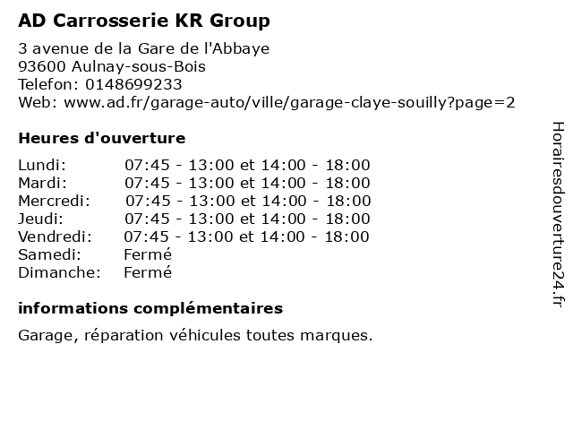 1 AD Carrosserie & Garage AD Expert - Livry Automobiles (Distance: 0,74 km) 117-119 Boulevard Jean Jaurès, 93190 Livry-Gargan ad, automobiles, carrosserie, courroie de distribution, devis réparation voiture, entretien auto, et, expert, garage, livry, revision voiture, réparateur voiture, réparation carrosserie, vidange 2 AD Seniors (Distance: 2,58 km) 3 Alleé Champlain, 93270 Sevran a la personne, ad, aide à domicile, seniors, services 3 Carrosserie AD de l'Eglise - Sarl Bel (Distance: 3,71 km) 82bis Avenue de la Résistance, 93340 Le Raincy ad, bel, carrosserie, courroie de distribution, de, devis réparation voiture, entretien auto, garage, l'eglise, revision voiture, réparateur voiture, réparation carrosserie, sarl, vidange 4 AD Auto Distribution (Distance: 3,93 km) 51 Rue De Meaux, 93410 Vaujours ad, auto, automobiles, concessionnaire, distribution, garage, motos 5 Compass Group France (Distance: 5,36 km) Paris Nord 2 Le Canal Aero, 93420 Villepinte compass, france, group, restaurants 6 Compass Group France (Distance: 6,05 km) 2 Etangs Aeropo Paris Nord, 93290 Tremblay En France compass, france, group, restaurants |