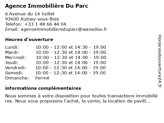 | Samedi | 10:00-12:30 et 14:00-19:00 |