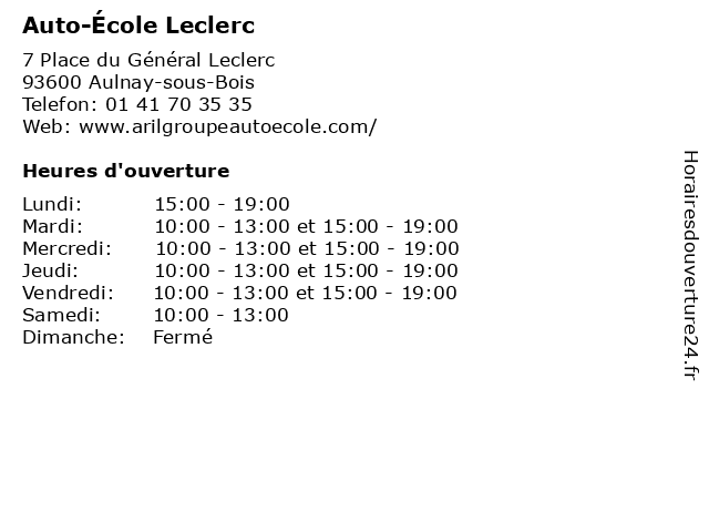 | Mercredi | 10:00-13:00 et 15:00-19:00 |
