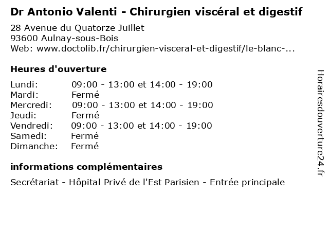 1 Dr Antonio Valenti - Chirurgien viscéral et digestif (Distance: 2,96 km) 10 Rue Roger Salomon, 93700 Drancy abdominale, antonio, cancérologie, cancérologique, chirurgie, chirurgien, denis, digestif, digestive, dr, et, générale, hôpital, obésité, paroi, privé, saint, seine, thyroïde, valenti, viscéral 2 Dr Antonio Valenti - Chirurgien viscéral et digestif (Distance: 10,50 km) 33 Rue Léon Menu, 94360 Bry-sur-Marne antonio, chirurgien, consultation, digestif, docteur, dr, et, med, médecin, traitement, valenti, viscéral 3 Dr Nicolas Munoz Bongrand - Chirurgien viscéral et digestif (Distance: 0,05 km) 30 Avenue du 14 Juillet, 93600 Aulnay-sous-Bois bongrand, chirurgie, chirurgien, digestif, dr, et, general, munoz, nicolas, soins, viscéral 4 Dr Eric Descamps - Chirurgien viscéral et digestif (Distance: 0,05 km) 30 Avenue du 14 Juillet, 93600 Aulnay-sous-Bois chirurgien, descamps, digestif, docteur, dr, eric, et, sante, soins, viscéral 5 Dr Mohamed Klouche - Chirurgien viscéral et digestif (Distance: 0,05 km) 30 Avenue du 14 Juillet, 93600 Aulnay-sous-Bois chirurgien, digestif, dr, est, et, hôpital, klouche, mohamed, parisien, privé, viscéral 6 Dr Renaud Guichard - Chirurgien viscéral et digestif (Distance: 0,08 km) 11 Avenue De La Republique, 93600 Aulnay-sous-Bois chirurgien, digestif, docteur, dr, et, guichard, medecin, ranaud, renaud, sante, services, viscéral |