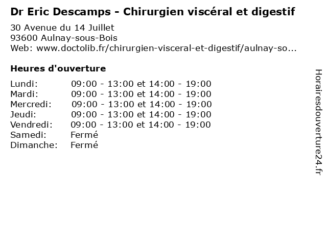 | Mercredi | 09:00-13:00 et 14:00-19:00 |