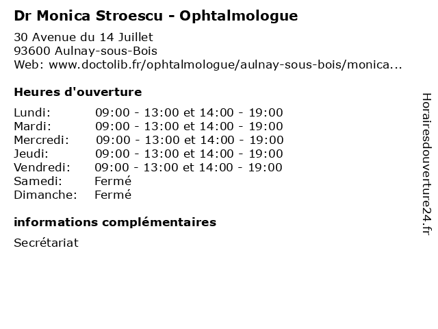 | Lundi | 09:00-13:00 et 14:00-19:00 |