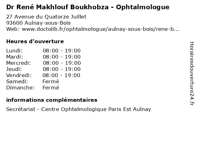 | Lundi | 08:00-19:00 |
