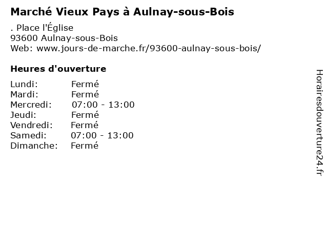 | Mercredi | 07:00-13:00 |