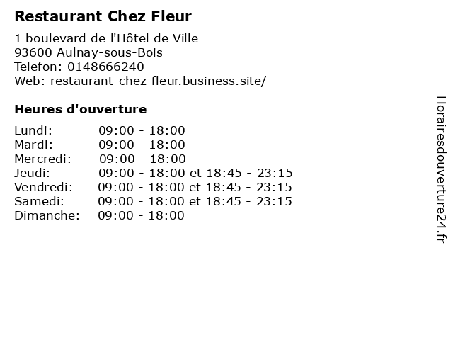 | Samedi | 09:00-18:00 et 18:45-23:15 |