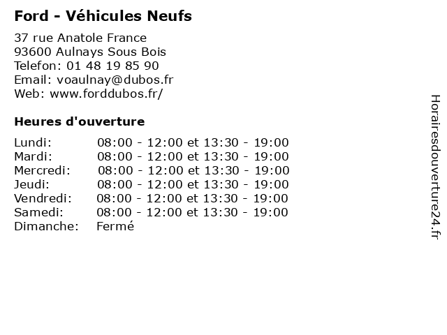 | Mardi | 08:00-12:00 et 13:30-19:00 |
