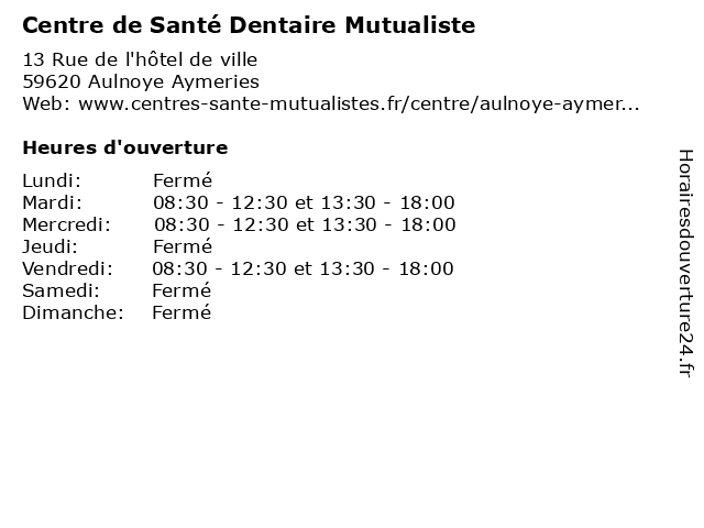 | Mardi | 08:30-12:30 et 13:30-18:00 |
