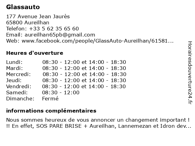 | Lundi | 08:30-12:00 et 14:00-18:30 |