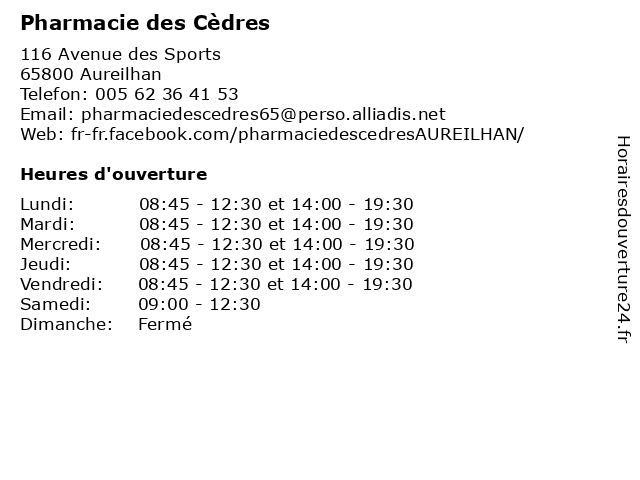 | Lundi | 08:45-12:30 et 14:00-19:30 |