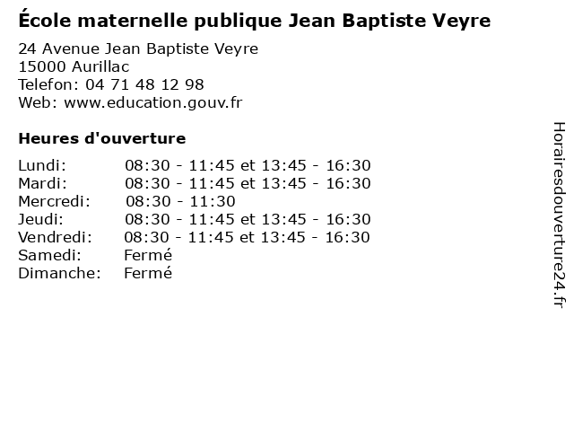 | Mardi | 08:30-11:45 et 13:45-16:30 |