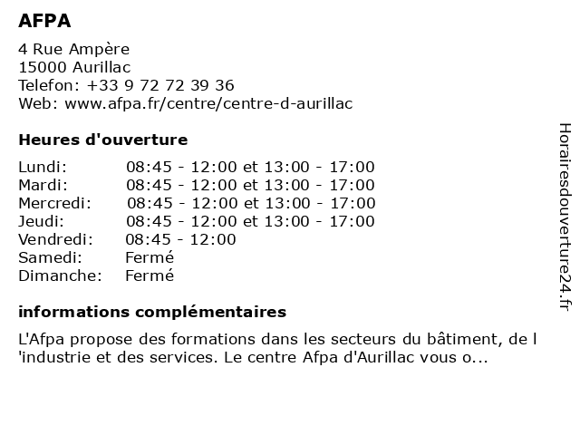 3 Afpa (Distance: 41,24 km) - Rue Alexis Monteil, 12300 Decazeville afpa, entreprise, partenaire, services |