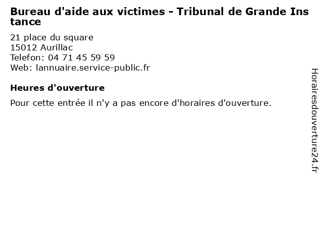 | Appeler Bureau d'aide aux victimes - Tribunal de Grande Instance | |