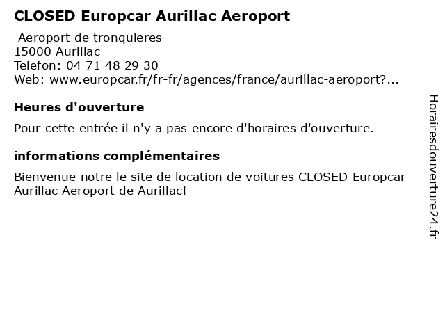 | Appeler CLOSED Europcar Aurillac Aeroport | |