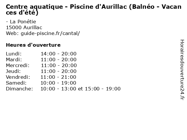 1 Centre aquatique - Piscine d'Aurillac (Bassin ludique) (Distance: 0,00 km) - La Ponétie, 15000 Aurillac aquatique, bassin, centre, d'aurillac, d'un sauna, d'un solarium, ludique, piscine, spa 2 Centre aquatique - Piscine d'Aurillac (Vacances scolaires) (Distance: 0,00 km) - La Ponétie, 15000 Aurillac aquatique, centre, d'aurillac, d'un sauna, d'un solarium, piscine, scolaires, spa, vacances 3 Centre aquatique - Piscine d'Aurillac (Vacances d'été) (Distance: 0,00 km) - La Ponétie, 15000 Aurillac aquatique, centre, d'aurillac, d'un sauna, d'un solarium, d'été, piscine, spa, vacances 4 Centre aquatique - Piscine d'Aurillac (Bassin sportif) (Distance: 0,00 km) - La Ponétie, 15000 Aurillac aquatique, bassin, centre, d'aurillac, d'un sauna, d'un solarium, piscine, spa, sportif 5 Centre aquatique - Piscine d'Aurillac (Bassin sportif - Vacances scolaires (hors vacances d'été)) (Distance: 0,00 km) - La Ponétie, 15000 Aurillac aquatique, bassin, centre, d'aurillac, d'un sauna, d'un solarium, d'été, hors, piscine, scolaires, spa, sportif, vacances 6 Centre aquatique - Piscine d'Aurillac (Bassin sportif - Vacances d'été) (Distance: 0,00 km) - La Ponétie, 15000 Aurillac aquatique, bassin, centre, d'aurillac, d'un sauna, d'un solarium, d'été, piscine, spa, sportif, vacances |