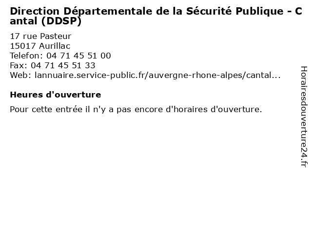 | Appeler Direction Départementale de la Sécurité Publique - Cantal (DDSP) | |
