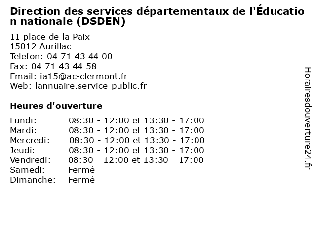| Lundi | 08:30-12:00 et 13:30-17:00 |