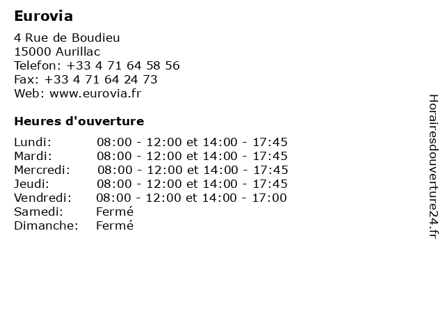 | Lundi | 08:00-12:00 et 14:00-17:45 |