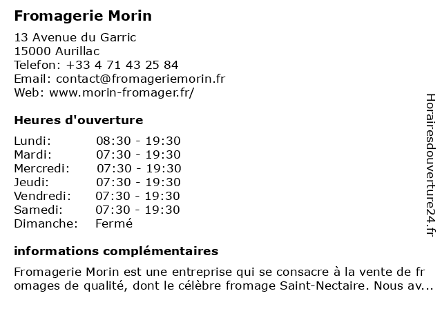 3 Fromagerie d'Aurillac (Distance: 1,05 km) 79 Avenue Charles de Gaulle, 15000 Aurillac alimentation, aurillac, cantal, d'aurillac, divers, fromagerie, fromages, id, magasin 4 Fromagerie Jean Bonal (Distance: 1,74 km) 6 rue Denis Papin, 15000 Aurillac affinage, bonal, cantal, fromage, fromagerie, jean 6  |
