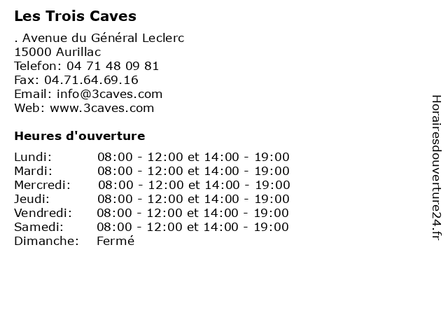 | Samedi | 08:00-12:00 et 14:00-19:00 |