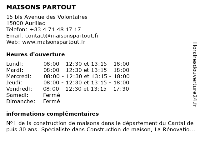 Lundi | 08:00-12:30 et 13:15-18:00 |