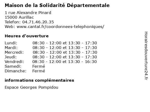 | Lundi | 08:30-12:00 et 13:30-17:30 |