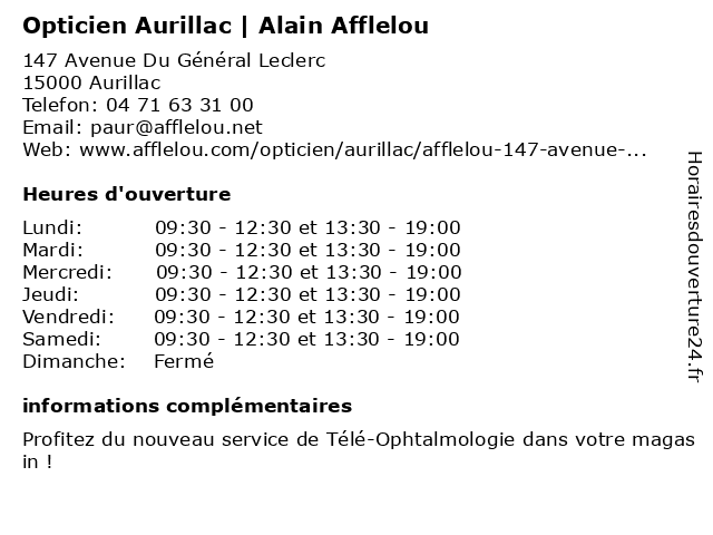 | Mardi | 09:30-12:30 et 13:30-19:00 |