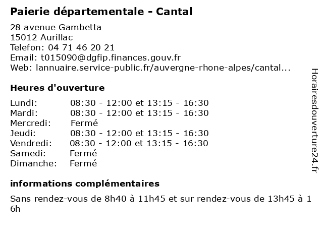 | Vendredi | 08:30-12:00 et 13:15-16:30 |