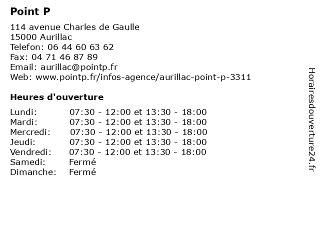 | Lundi | 07:30-12:00 et 13:30-18:00 |