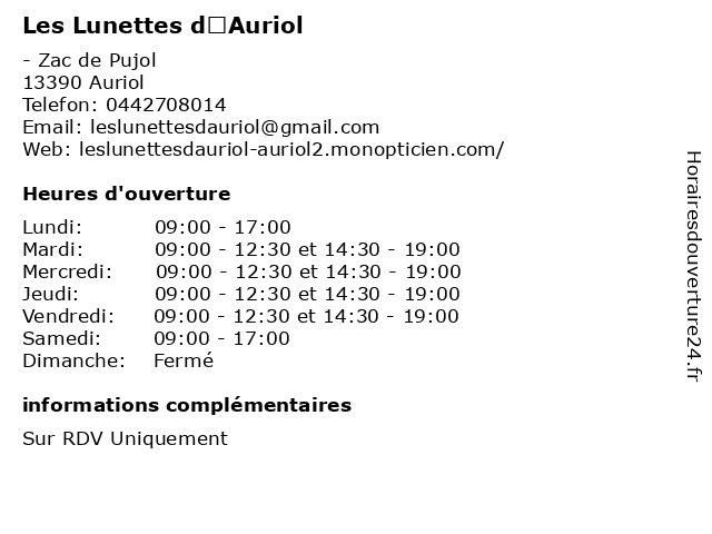 | Mardi | 09:00-12:30 et 14:30-19:00 |