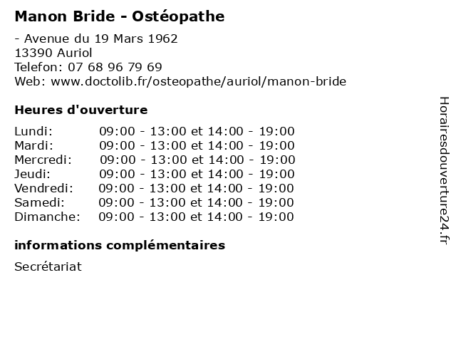 | Lundi | 09:00-13:00 et 14:00-19:00 |