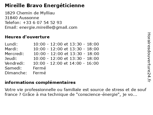 | Mercredi | 10:00-12:00 et 13:30-18:00 |
