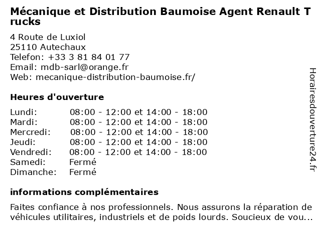 Termes de recherche pour Mécanique et Distribution Baumoise Agent Renault Trucks:et, renault, mécanique, distribution, agent, trucks, baumoise |