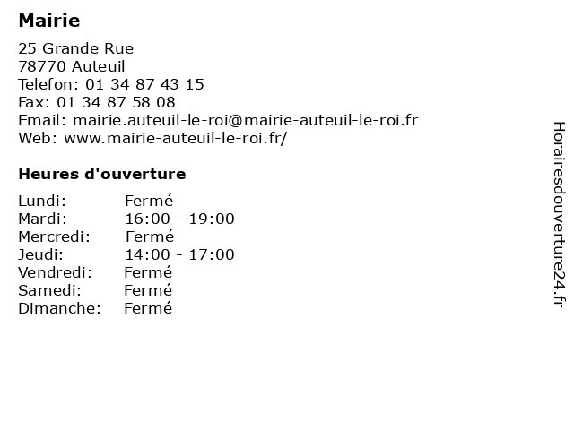 1 Mairie (Distance: 0,93 km) - Rue de la Mairie, 78650 Saulx-Marchais administration, mairie, public, service 3 4 Mairie (Distance: 6,91 km) 36 Rue de Paris, 78490 Montfort-l'Amaury administration, assoc public, de, l'amaury, mairie, montfort 6 |