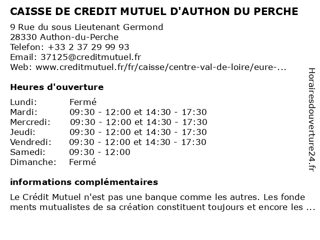 Termes de recherche pour CAISSE DE CREDIT MUTUEL D'AUTHON DU PERCHE:du, de, perche, crédit, mutuel, caisse, d'authon |