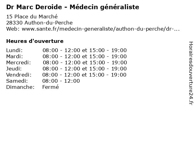 | Mercredi | 08:00-12:00 et 15:00-19:00 |
