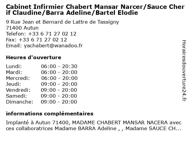 Termes de recherche pour Cabinet Infirmier Chabert Mansar Narcer/Sauce Cherif Claudine/Barra Adeline/Bartel Elodie:cabinet, chabert, elodie, cherif, infirmier, mansar, claudine/barra, adeline/bartel, narcer/sauce |