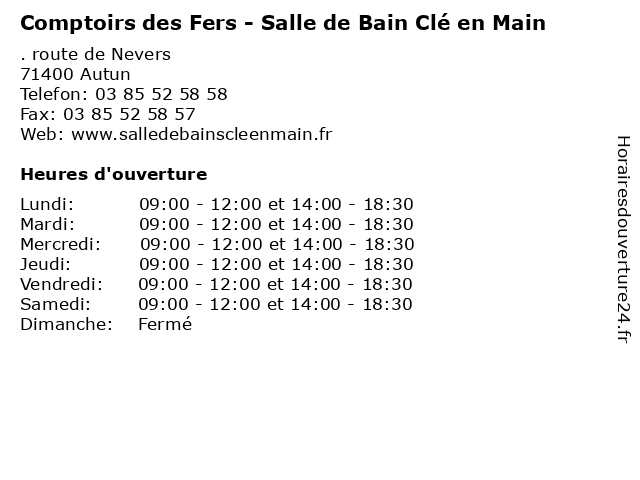 | Samedi | 09:00-12:00 et 14:00-18:30 |