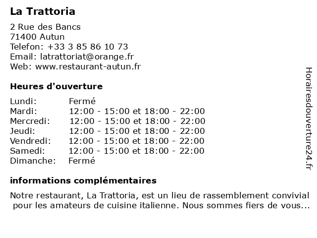1 La Trattoria (Distance: 41,78 km) 15 place au Beurre, 21200 Beaune italien, la, restaurants, restauration, trattoria |