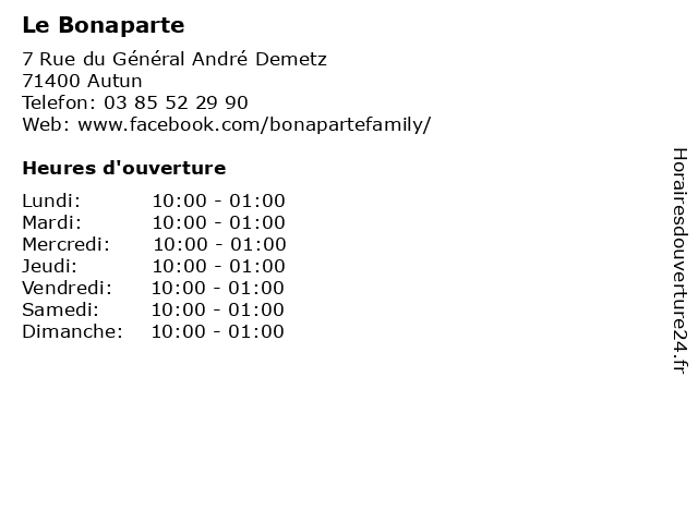 | Samedi | 10:00-01:00 |