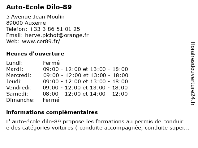| Mardi | 09:00-12:00 et 13:00-18:00 |