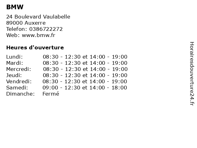 | Lundi | 08:30-12:30 et 14:00-19:00 |
