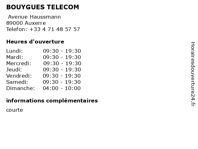 1 BOUYGUES TELECOM (Distance: 0,05 km) 1 Avenue Haussmann, 89000 Auxerre bouygues, fai, fournisseur d'accès internet, telecom, téléphonie mobile 2 Coriolis Telecom (Distance: 0,67 km) s/n Avenue Haussmann, 89000 Auxerre coriolis, mobiles, services, telecom, téléphones 3 Welcom' - Coriolis Telecom (Distance: 2,50 km) 9 Rue du Temple, 89000 Auxerre coriolis, internet, smartphones, tablettes tactiles, telecom, télécom, téléphone, téléphones mobiles, welcom' 4 Welcom | Téléphone, reconditionné, réparation, forfait, box internet (Distance: 0,00 km) Avenue Haussmann, 89000 Auxerre accessoires, bouygues telecom, box, box internet, box internet fibre, coriolis télécom, diagnostic téléphone, forfait, forfait mobile, internet, objets connectés, occasion, reconditionné, reconditionnés, reprise de téléphone, reprise iphone, revendez votre téléphone actuel, réparation, réparation téléphone, téléphone, téléphones neufs, téléphonie mobile, vendre son ancien téléphone, welcom, éligibilité à la fibre 5 Coriolis Telecom (Distance: 22,17 km) - Rond point de la Résistance, 89300 Joigny coriolis, internet, mobile, telecom, téléphone 6 Peyronnon clef des champs (Distance: 27,20 km) 44 Gr Grande Rue, 89600 Germigny champs, clef, des, peyronnon |