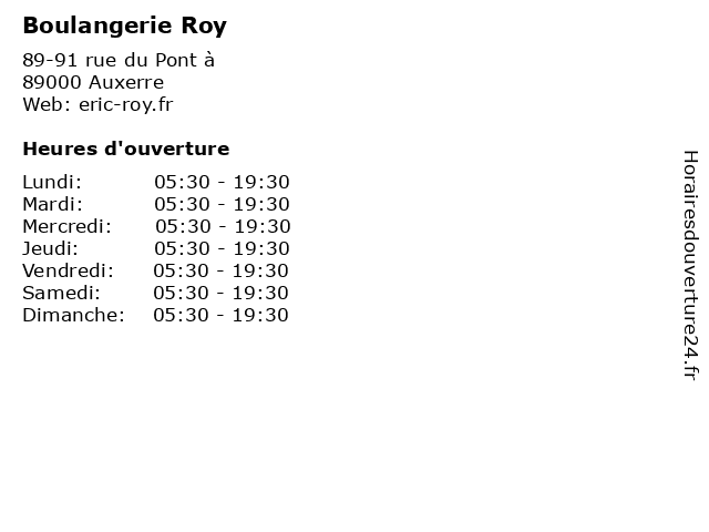 | Lundi | 05:30-19:30 |