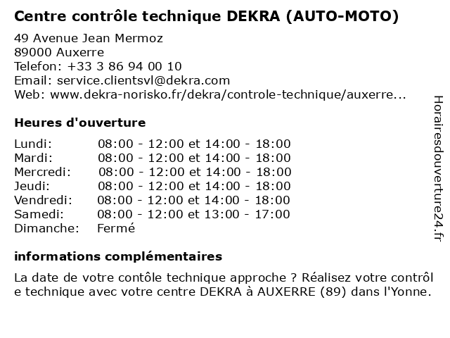 Description de l'entreprise :Préparer votre contrôle techniquePour préparer votre contrôle technique dans notre centre DEKRA de Auxerre, vous pouvez vérifier en amont différents points comme les pneumatiques, la visibilité, le niveau d'huile ou encore l'habitacle. Pour tout savoir, consultez notre vidéo. Voir l'offre |